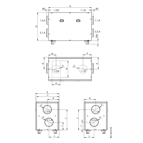 OBS. VEX1000 med roterande värmeväxlare finns också som toppansluten variant . Se under produkten VEX1000RT.
