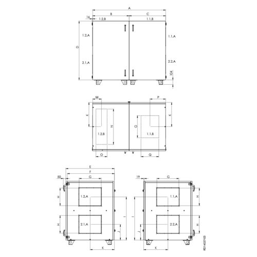 - Utan automatik (Option) – Aggregatet levereras utan automatikbox, automatik, elektrisk ledningsdragning och sensorer. Kunden ansvarar själv för el- och automatik. (Styrningar och motorer för roterande värmeväxlare, fläktar och spjäll ingår)